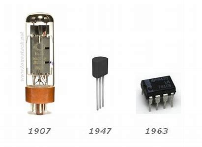1906: Lee De Forest introduced the triode vacuum tube, which could amplify electrical signals (like a microphone making a voice louder).