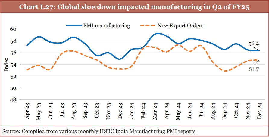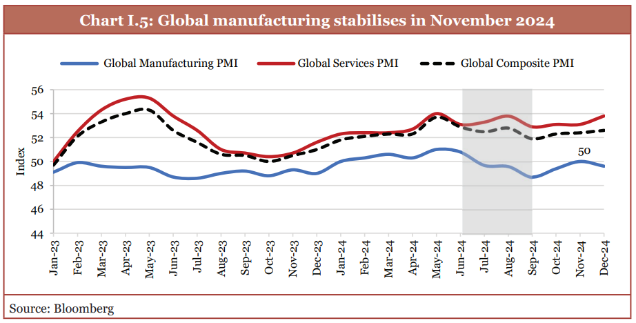December 2024’s PMI also stayed above the growth threshold, reinforcing the sustained strength of India’s private sector. While yes service sector reigned, Manufacturing maintained positive momentum despite a slight slowdown.