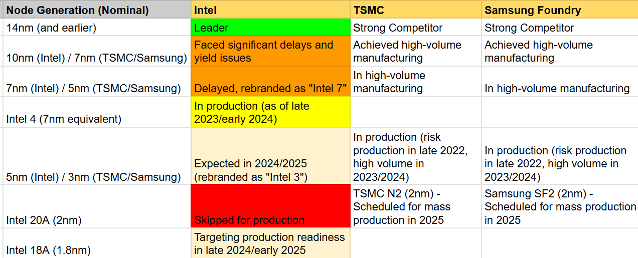 This is where the lag arised . Intel used to be top leader with their 14nm tech. But only some server CPUs & mid-range graphic cards from around the mid-2010s to early 2020s utilized 14nm technology. The game's moved on, and everyone wants chips that are smaller and faster. Now, Intel's saying they've got this awesome new tech called 18A that could actually put them ahead of everyone again! That's the good news.