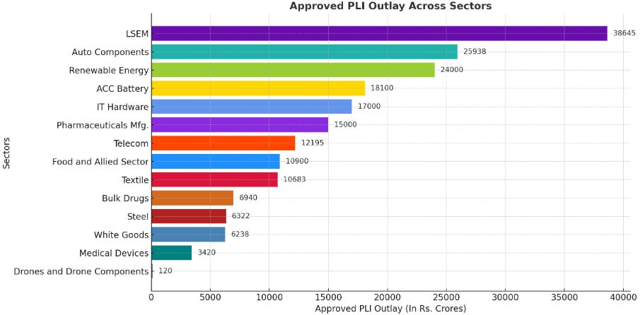 Sectoral Imbalances – While industries like electronics and pharmaceuticals have seen significant gains under PLI, sectors like textiles and solar manufacturing have struggled to gain the same momentum due to global competition and supply chain challenges.